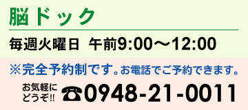 脳の病気は、自覚症状があらわれないことも多くあります。気が付いた時には、かなり病状が進行していた・・・というケースも少なくありません。早期発見・早期治療が脳の健康を保つ上で、最も重要です。